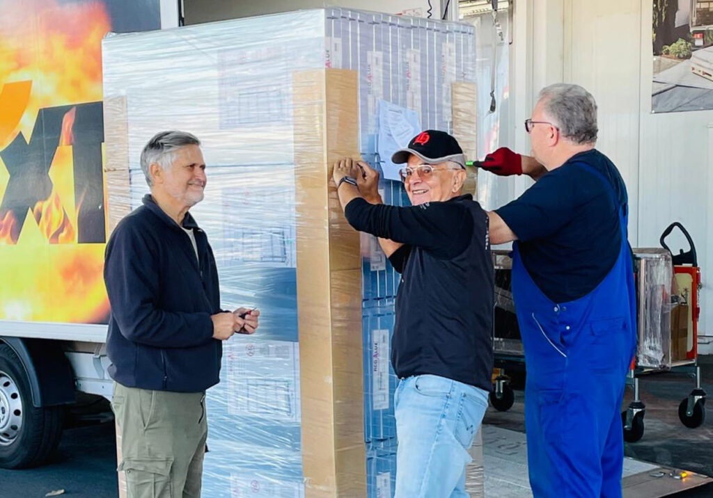 Wir begleiten das Transportteam der Medizinhilfe, wie es gespendete Hilfsgüter aus unserem Lager in Hanau sowie Werkzeuge und Geräte bei Einzelhändlern abholt.